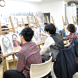 | 授業内容 | まず基本のデッサンの勉強を鉛筆で描きます。木炭で石膏像を描いて人物画の予備勉強をします。合わせてパステル、水彩の技法を研究して色を使って絵画らしくしていきます。 静物、風景、人物と何でも描けるように2年でなれます。 |