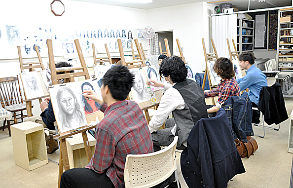 | 授業内容 | 最初は鉛筆で静物から中型石膏像まで描き、鉛筆画が習得出来たら木炭で大型石膏像を描きます。モノの見方が角度とバランスで捉えられるようになれば、人物画も楽に描けるようになります。習得後、上級の人物クラスに移ります。基本から身につけたデッサン力はすべてのジャンルの美術に役立ちます。 |